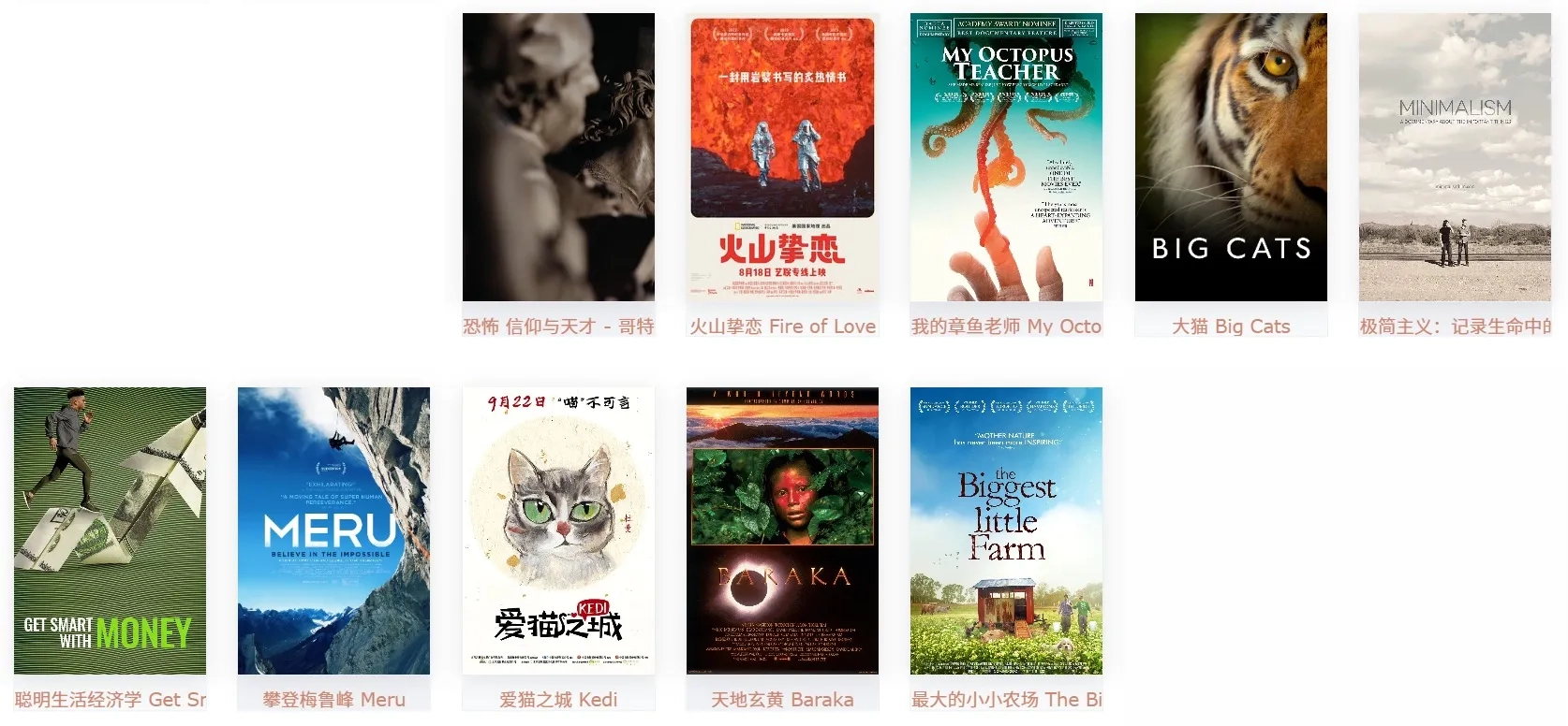 | 《大猫》 | 《我的章鱼老师》 | 《火山挚恋》 |
